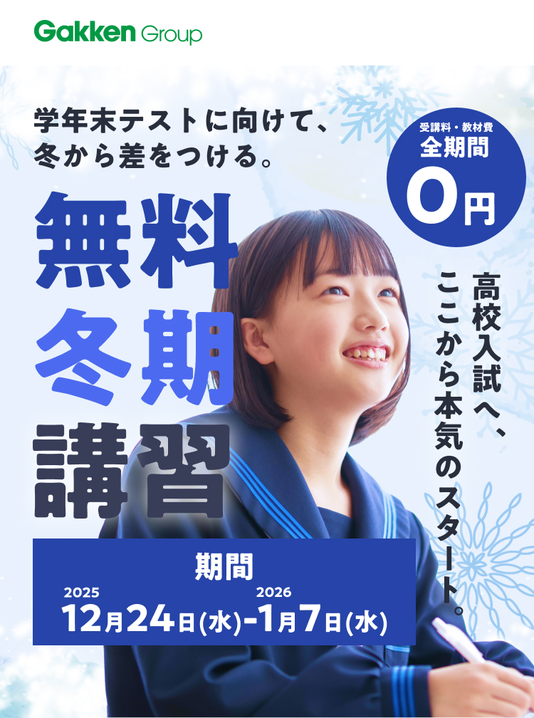 教科書内容の理解を深めつつ、短期の目標を設定。定期テストの目標達成をめざし、冬期講習会で復習と予習を行い、3学期定期テストに向けて準備します。