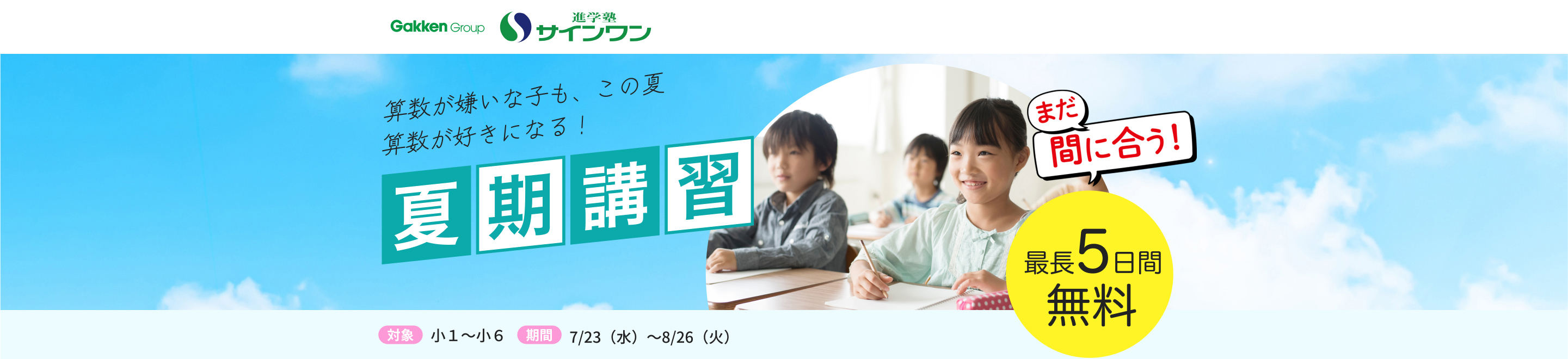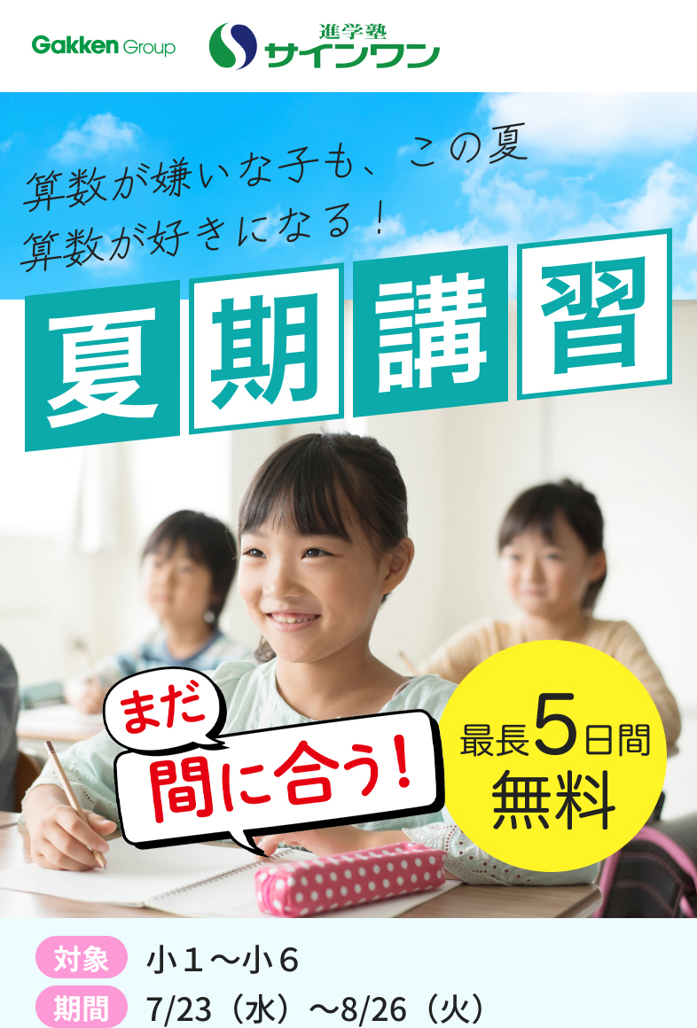 夏休みの宿題、一人ではなかなか進まない…そんなことはありませんか?サインワンでは、夏休みの負担を減らし、楽しく課題を進められるような特別なイベントを用意しています。楽しく宿題を進めましょう!