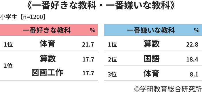 しかし、実は好きな教科にも「算数」(2位)が入っています!