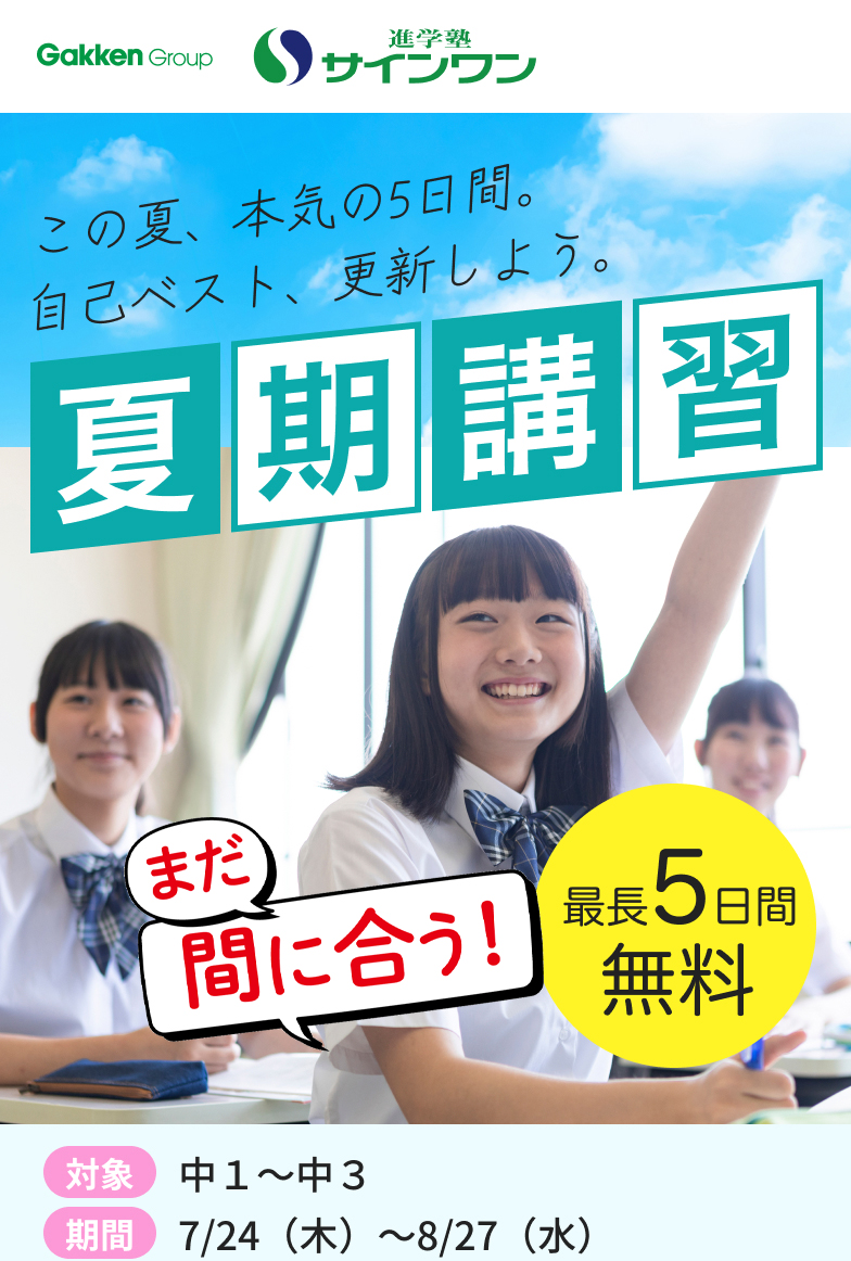 夏期講習で得意な数学は伸ばすことができました!英単語が苦手という課題を見つけることができたので、今後の勉強で得意にしていきたいです。