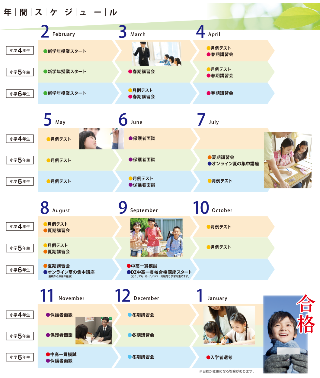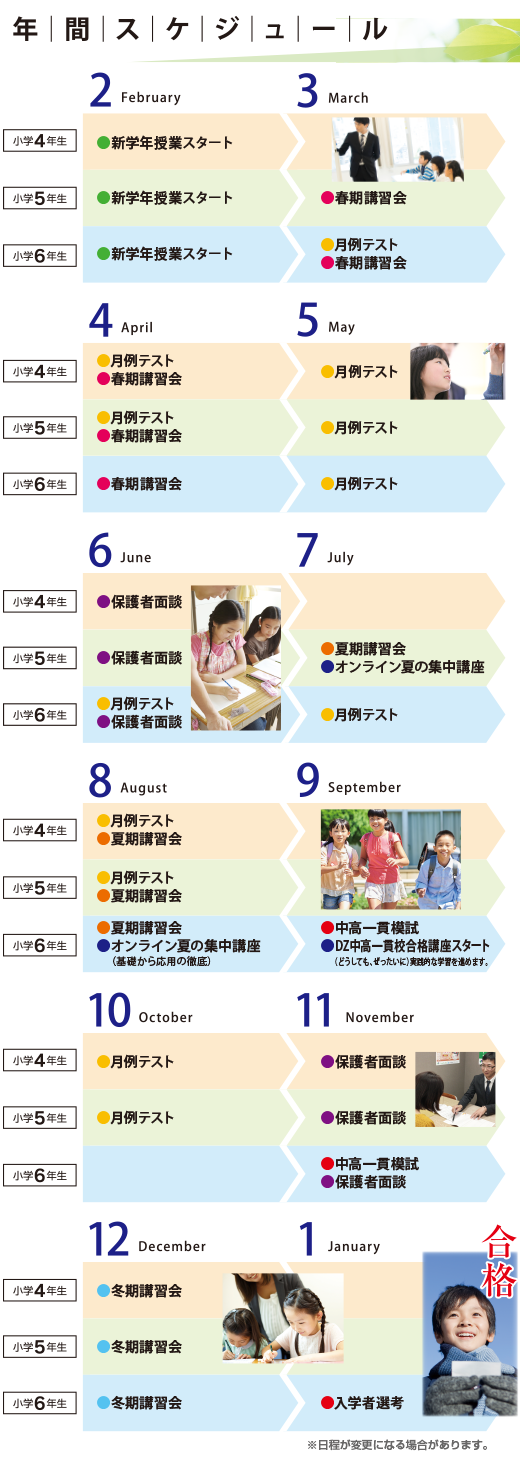| 土 | サッカー(午前) | 適性検査実践① 17:00~17:50 適性検査実践② 18:00~18:50 図形の極 18:55~19:10 |