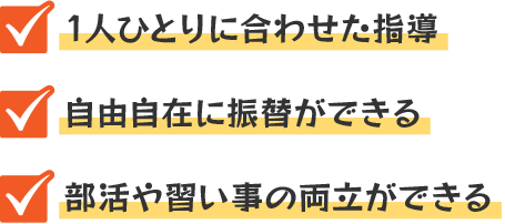部活動が忙しいなか、塾に通う小学生は多くおられます。しかし、従来型の学習塾では、授業開始の時間が固定されてしまっているので、部活動を早めに切り上げて通わなくてはなりません。授業の開始時間に間に合わず、学習時間が十分とれない子もいます。
