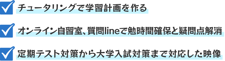 科目ごとに計画を立てチューターと二人三脚で取り組みます。