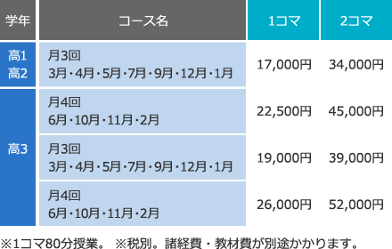 部活動やテスト期間などで、授業を受けられる日時が限定されると、どうしても設定された日時では、授業が受けることが出来ないケースが考えられます。その場合には、教師と日時を相談の上で、1コマ80分の授業のコマ組みを別日に振り替えすることが可能です。