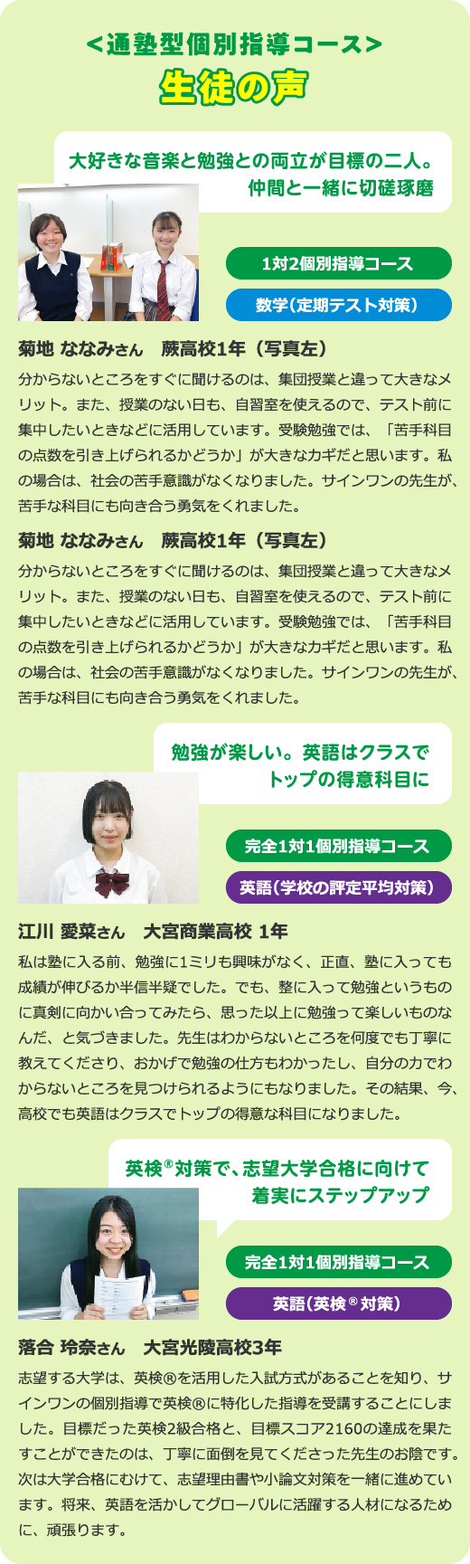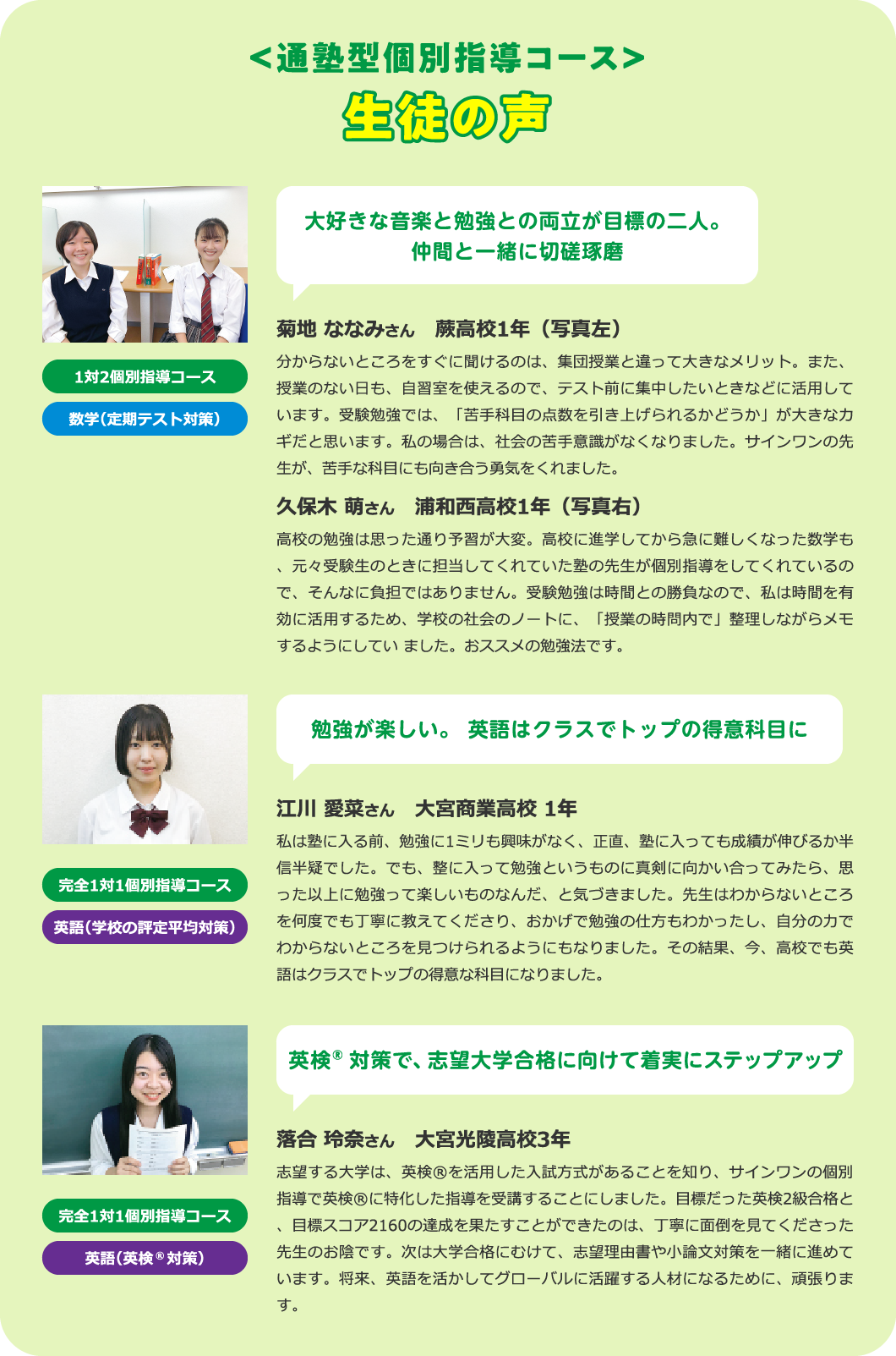 特に数学や化学など理系科目が苦手な生徒や英検取得を目指す生徒には絶対にお勧めです。