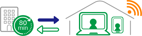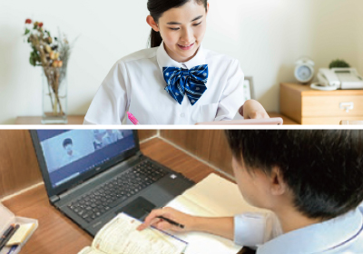 ご自宅のパソコンやタブレット、スマートフォンを使って、オンライン上で個別指導を行います。通塾型個別指導の対面授業と変わらない対話型のオンライン授業で、授業時間も同じ50分間です。